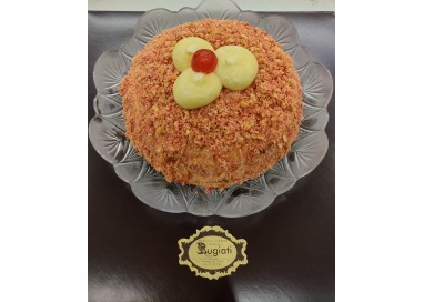 Pan di spagna bagnato alchermes, zabaione e pezzetti di cioccolato